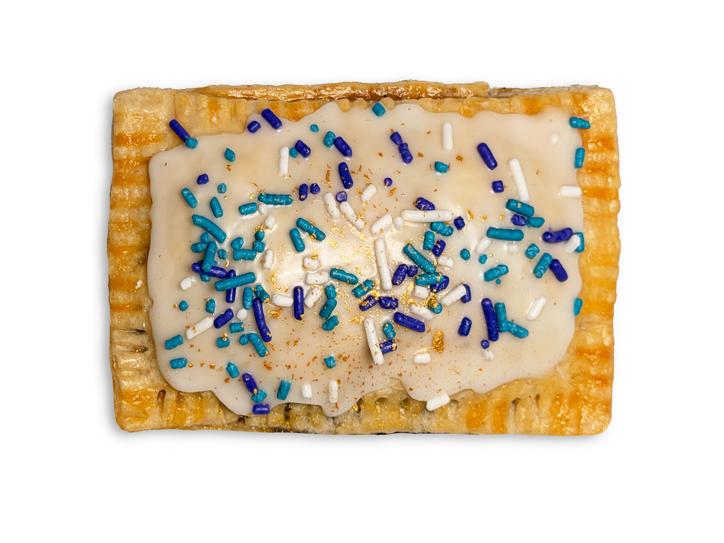 Unbleached hard red wheat flour (enzyme), Soybean oil, fully hydrogenated palm oil, palm oil, mono and diglycerides, TBHQ (antioxidant), citric acid (antioxidant), Himalayan pink salt, eggs. Blueberries, organic raw cane sugar, lemon juice, fruit pectin, calcium water. Powdered sugar (cane sugar, cornstarch), Sugar, Vegetable Oil (Palm, Palm Kernel), Cornstarch, Confectioner’s Glaze, Dextrin, FD&C Colors (Red 40 Lake, Yellow 6 Lake, Yellow 5 Lake, Blue 1 Lake), Natural & Artificial Flavor, Soy Lecithin, Red 3, Carnauba Wax. Mica-Based Pearlescent, Food Grade Colorant.